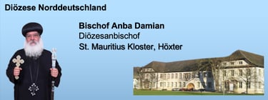 His Excellency Bishop Anba Damian is the diocesan bishop for the diocese of Northern Germany and His Excellency Bishop Anba Michael is the diocesan bishop for the diocese of Southern Germany.