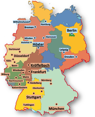 There are two Coptic monasteries in Germany that also serve as episcopal seats: The Monastery of the Virgin Mary and St. Maurice in Höxter-Brenkhausen (North Rhine-Westphalia) and the St. Anthony's Monastery in Kröffelbach (Hesse).